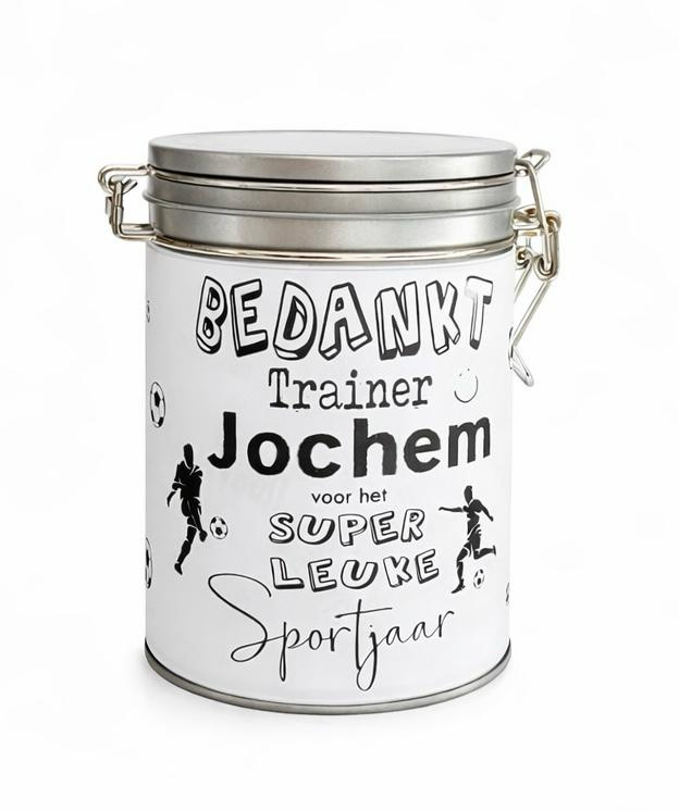 Iedere week, zelf soms meerdere keren per week, staat de voetbaltrainer weer met veel plezier voetbaltraining te geven aan jouw team of die van je kinderen. Door het enthousiasme van de voetbaltrainer, gaat jouw team of jouw kind iedere week met plezier naar de training toe. Het hebben van een toffe voetbaltrainer is dan ook onbetaalbaar! Vaak geven ze de training in hun eigen tijd en op vrijwillige basis. Genoeg redenen om de voetbaltrainer van jullie team te bedanken met een tof cadeau speciaal voor de voetbaltrainer. Ons assortiment met cadeaus zijn origineel, leuk en bruikbaar. Bij ons vind je sowieso een cadeau die een lach op het gezicht van jullie voetbaltrainer tovert. Geef het luxe cadeaupakket gevuld met lekkers of gepersonaliseerde cadeaublik met thee.